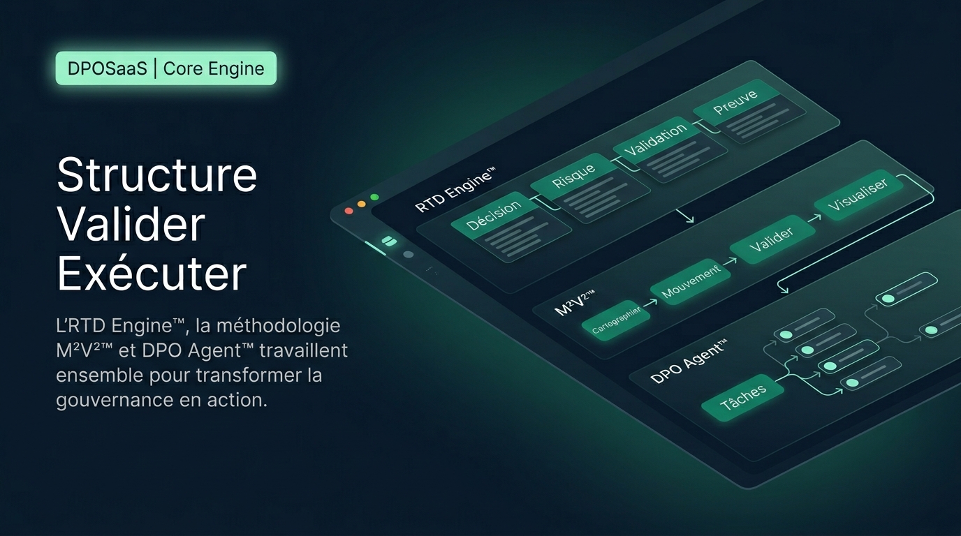 DPO App est propulsé par un moteur propriétaire qui transforme les données de conformité brutes en savoir institutionnel — automatiquement, en continu et de manière traçable.